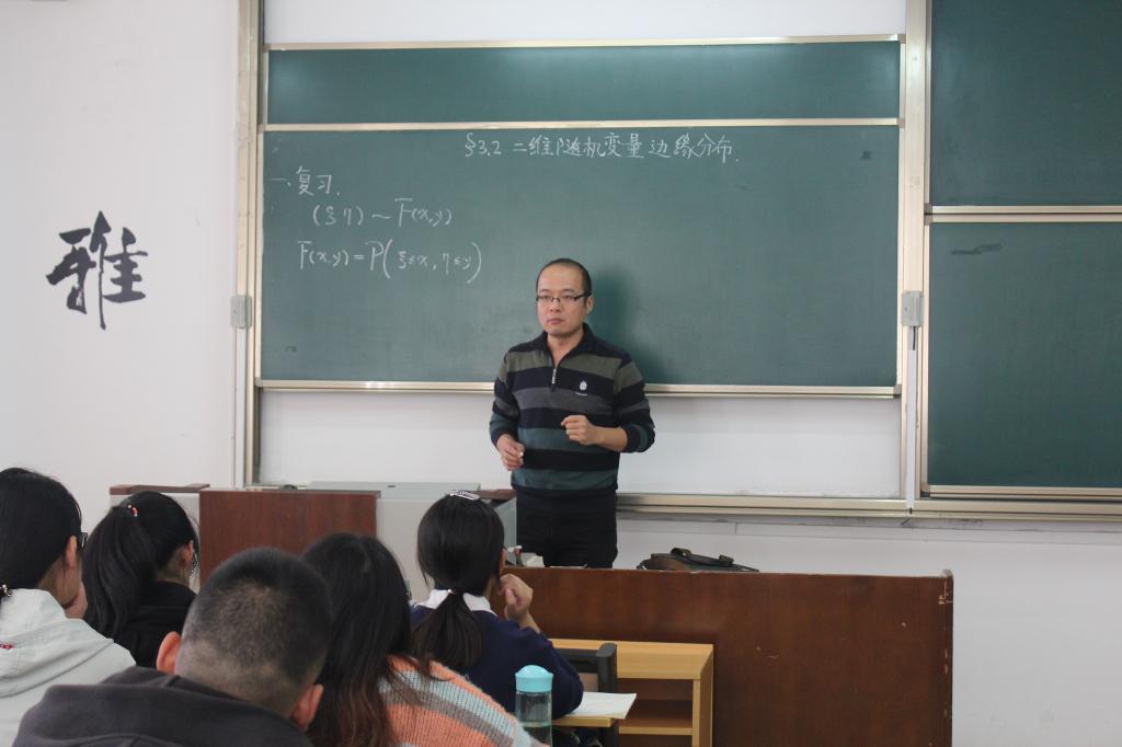 10月23日下午14:00,邵伟老师在JC108举行杏吧原创 青年教师公开课第八讲。本次课程的内容是《二维随机变量的分布及密度函数》。邵老师的课堂无需修饰,简单明了。黑板上的板书整齐,重点突出,思路清晰,同学们听得专心致志。传统的课堂模式与邵老师的投入相结合,使教学回归本真状态,更高效地完成了知识的传递。