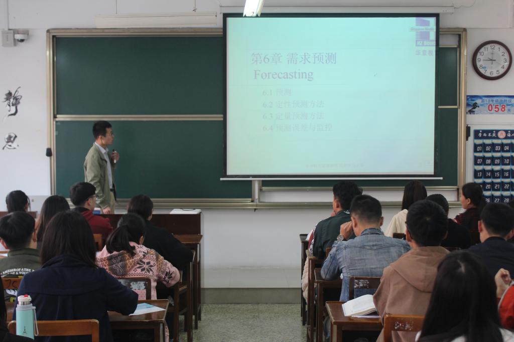 10月27日9:00,王成飞老师于JC103举行杏吧原创 青年教师公开课第九讲——《生产运作管理-需求预测》。课堂初始,王成飞老师以常见现象为导入点,引入课堂内容。在课堂上,王老师积极与学生互动,同学们也积极响应。在提问过程中,同学们积极思考,踊跃发言,课堂气氛十分活跃。在王老师的课堂上,学生是课堂的主体,这种以学生为主的教学方式让同学们更容易接受和掌握课堂内容,更好地汲取知识。