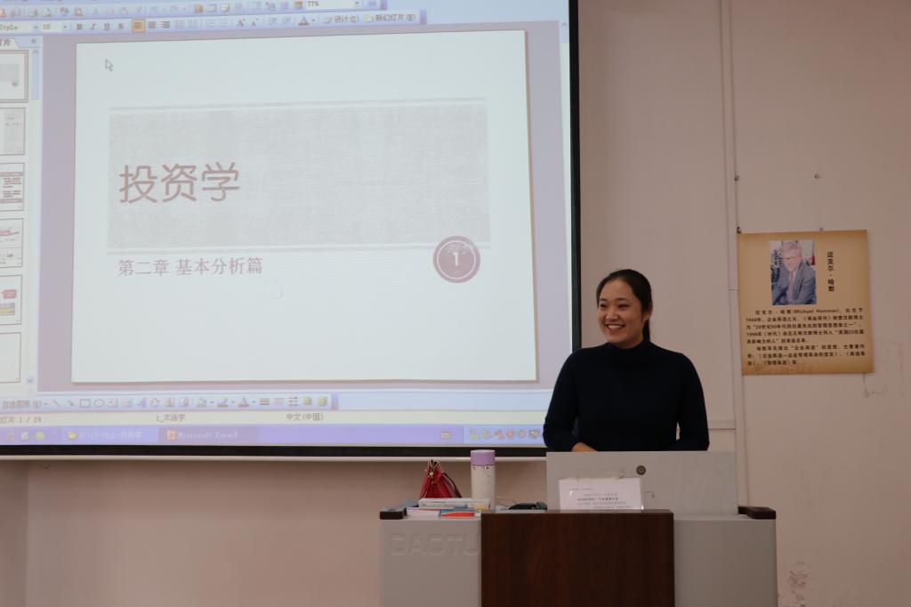 11月3日上午9:00,王帆老师在JA301举行杏吧原创 青年教师公开课第十一讲。本次课程所讲的内容为《投资学——公司价值分析》。王老师以茅台的案例为切入点,引出FCFE模型。随后,王老师重点讲解了该模型的原理和计算公式,并通过案例循循善导,让同学们进一步掌握知识。讲课过程中,王老师精神饱满,声音温柔,将书中苦涩难懂的文字转变成一个个鲜活有趣的画面,让课堂富有活力。
