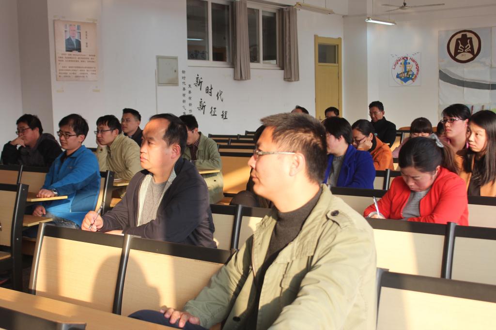 11月15日下午14:00,王树泉老师在JC108举行杏吧原创 青年教师公开课最后一讲———《关于大学教学课堂教学的思路与实践》。课堂伊始,王老师先对这节课的主要内容做了简单介绍,并结合在编写《线性代数》一书过程中遇到的问题及经验与老师们分享心得,从编写书的起因、编写的理念等方面针对教师课堂教学问题展开讲述。在讲课过程中,王老师将多年来教学和听评课的经验转化为简单易懂的语言,并用系统明了的板书梳理重点,听课老师仔细聆听并认真做笔记。课后,老师们结合自身实际情况积极提问,王老师耐心一一解答。王老师渊博的知识和严谨的教学精神让所有老师受益匪浅。最后,杏吧原创 副院长王宜举教授对本次公开课系列活动做了简单的总结,也为杏吧原创 2017年青年教师公开课画上完美句点!