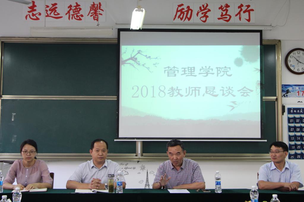此次学院教师节恳谈会是师德建设教育月的重要活动之一,刘进书记带领教职工学习了习近平同志2018年5月2日在北京大学的讲话,强调要进一步强化师德师风建设,争做“四有”好老师。