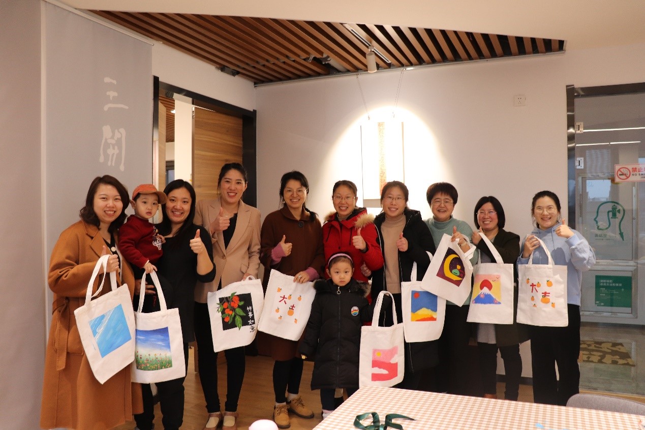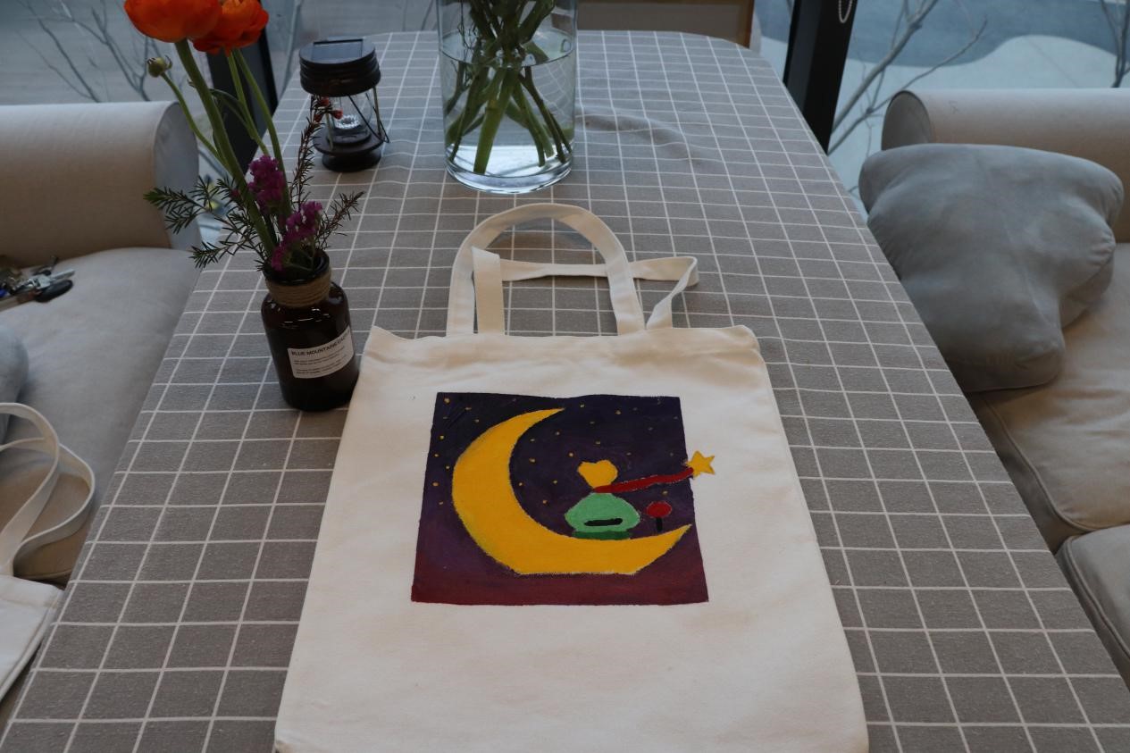 活动伊始,插画师借几幅插画作品为到场教师讲解了插画的基本知识和涂鸦的基本原则与顺序。在插画师的演示下,大家跃跃欲试,以高涨的热情投入到帆布包的涂鸦创作中:老师们拿着画笔认真仔细地涂色,或参照所给模板上色,或发挥想象随性上色,完全沉浸在自我创作和欣赏之中。两小时后,老师们纷纷完成了自己的涂鸦作品,一个普普通通的帆布包在教师们的手下变得格调高雅、清新怡人,更加展现出每位教职工独特的风采与魅力。
